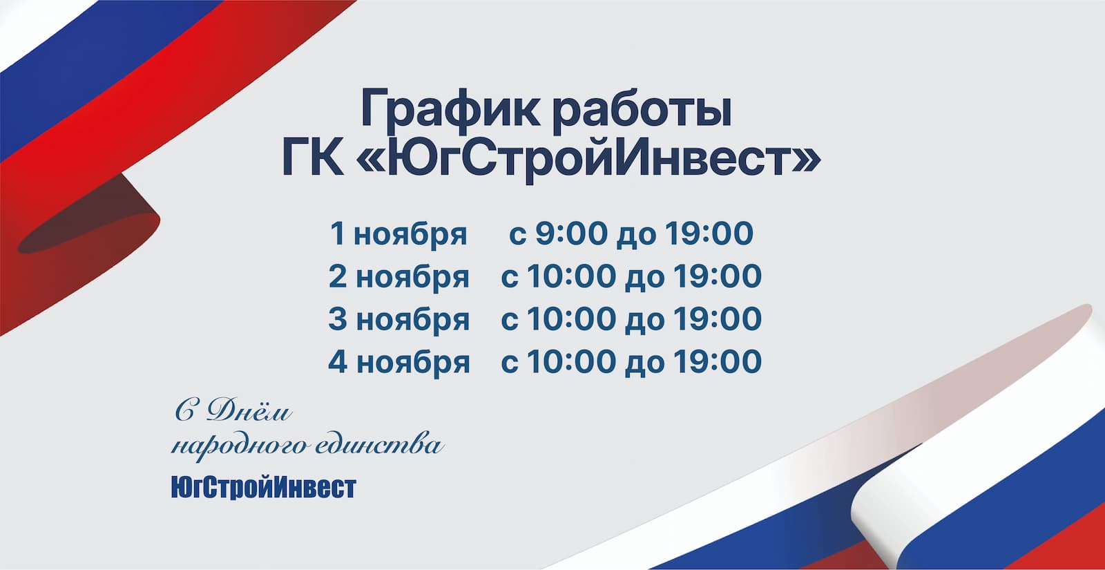 График работы ГК «ЮгСтройИнвест» в праздничные дни